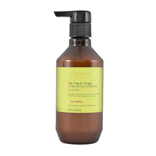 Theorie Tea Tree and Ginger Conditioner 400ml stimulates and renews hair with refreshing tea tree oil, mineral-rich ginger root, moisturising grapeseed oil, strengthening keratin, and energising gingko biloba.