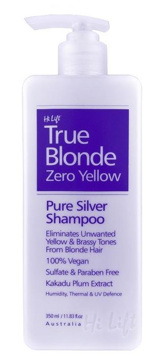 Hi Lift TrueBlonde Zero Yellow Pure Silver Shampoo eliminates unwanted yellow and brassy tones from blonde and grey hair.