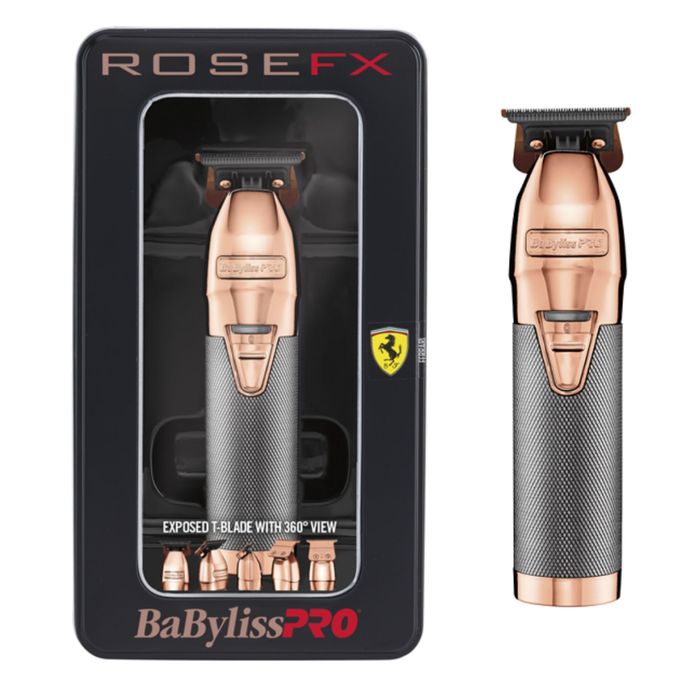 With a high torque motor designed by Ferrari engineers, Babyliss PRO RoseFX Outliner Trimmer is the gold standard of outliners with its unique, 360° exposed, zero gap T blade. This one of a kind, high speed, cord/cordless lithium trimmer speeds up to 7200 rpm and is the ideal tool for crispy edge ups, hard lines and all other detail work. Beautiful all-metal housing with glossy rose finish.