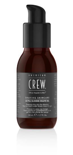 American Crew Ultra Gliding Shave Oil cushions skin for a close, effortless shave.